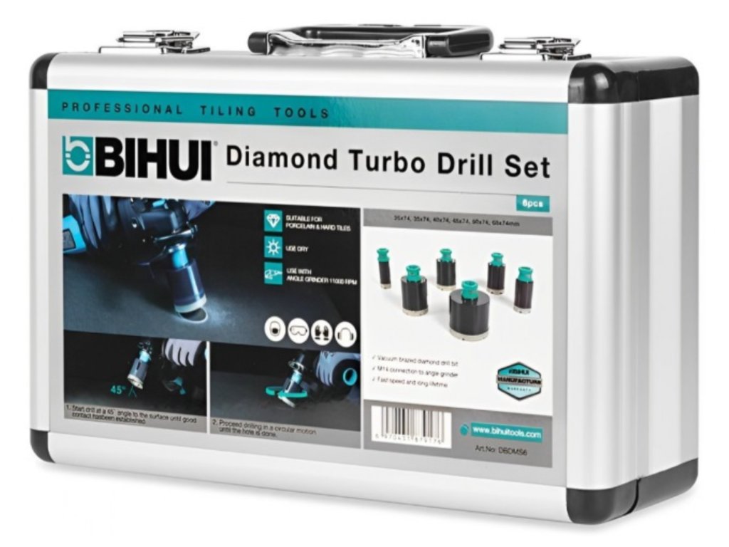 BIHUI - 6-dílná sada diamantových korunek 25,35,40,45,50,68mm M14 v hliníkovém kufru