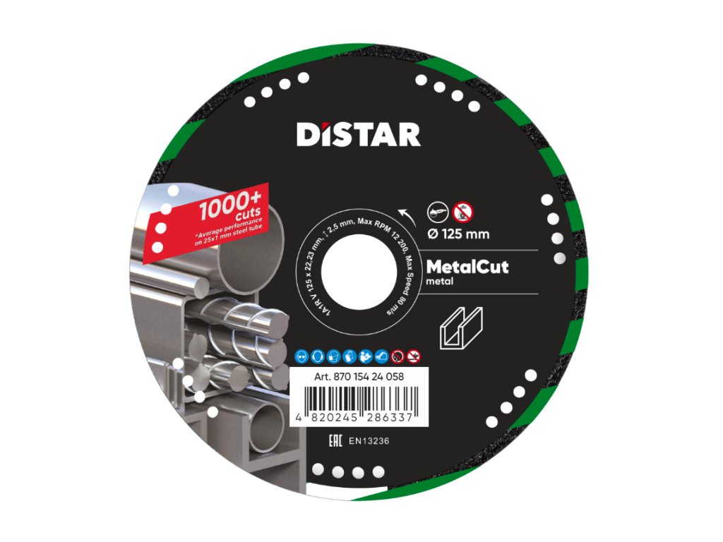 - Rozměrová stabilita. Po 7 řezech brusivem je kotouč broušen tak, aby neprořezal trubku do plné hloubky. Diamant má po 1000 řezech stejný průměr.