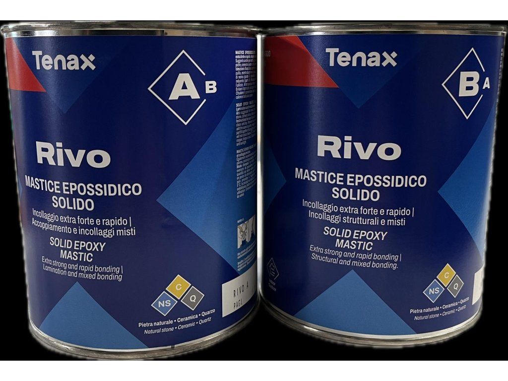 RIVO je vhodné i na lepení kombinací materiálů: kámen+kámen, kov+kámen, beton+kov, keramika+kámen, kámen+kompozitní materiály. Kov by měl být před aplikací zdrsněn. K obarvení lepidla lze použít univerzální barvící pasty Tenax nebo oxidy kovů.